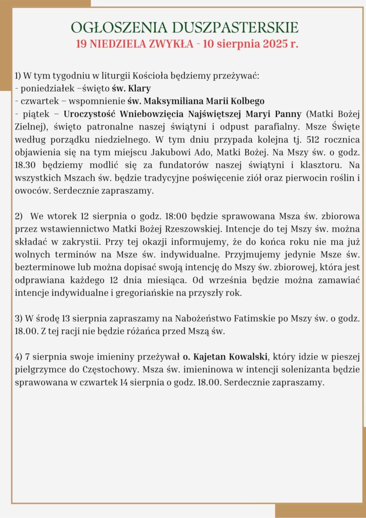 Strona główna » 19 NIEDZIELA ZWYKŁA – 10 sierpnia 2025