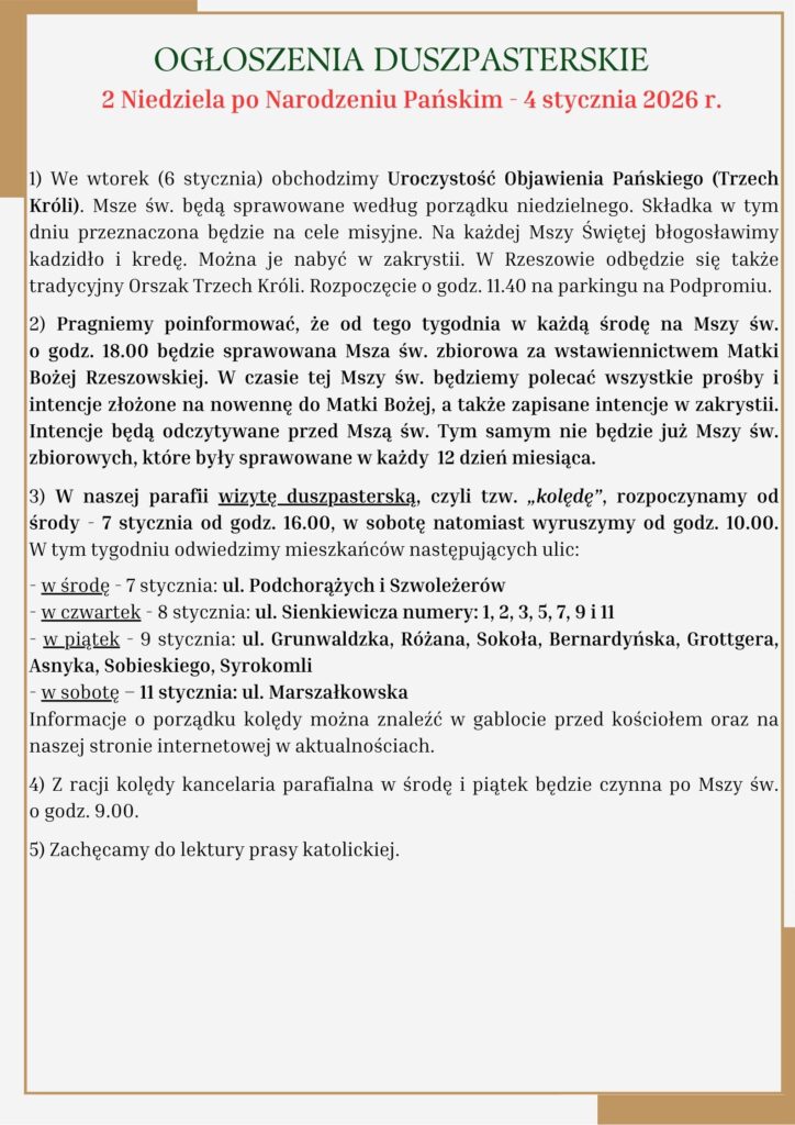 Strona główna » 2 NIEDZIELA po NARODZENIU PAŃSKIM 4 stycznia 2026