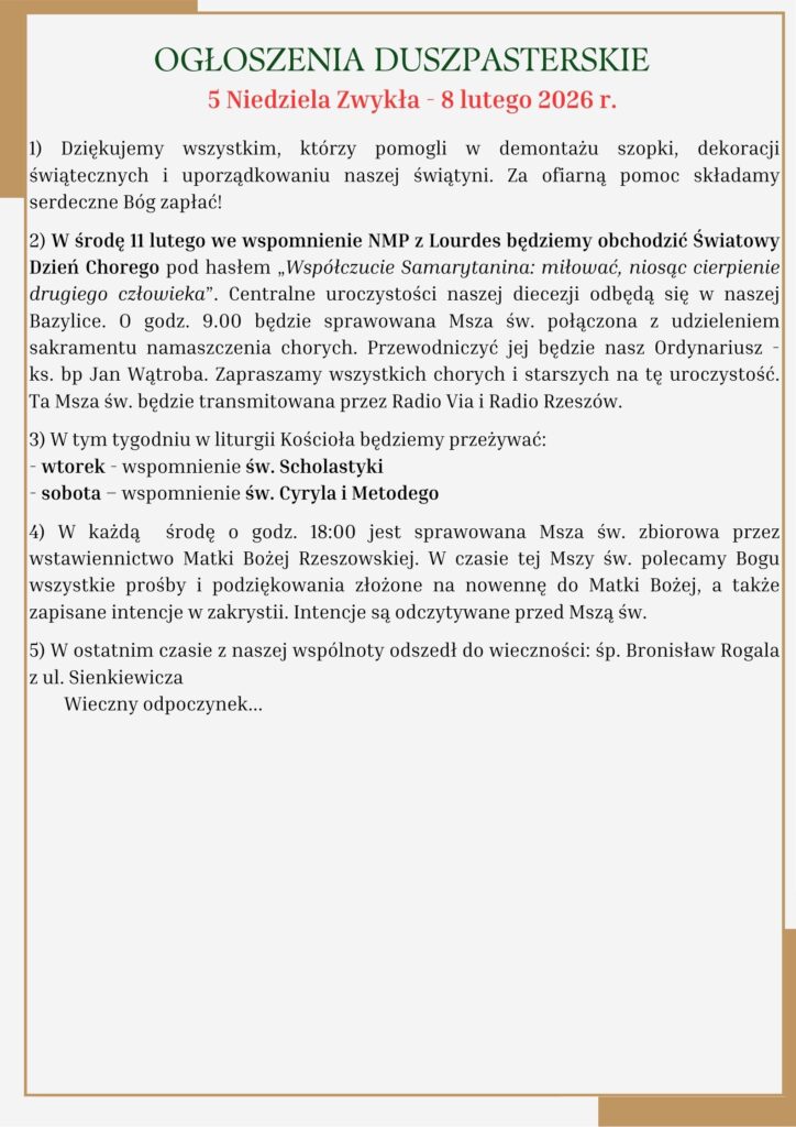 5 NIEDZIELA ZWYKŁA – 8 lutego 2026